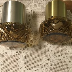 2 vackra Fönsterbelysningar med guldförgyld stomme och fina kristallprismor