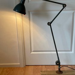 Lampa byggd en gammal syrgas-mätare. Fästes på vägg. Jordad med tygkabel, strömbrytare och E14-lamphållare.