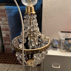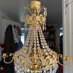 Elegant taklampa med vackra kristaller som sprider ett behagligt ljus. Perfekt för att skapa en lyxig atmosfär i hemmet.