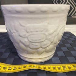 • Keramisk blomkruka med handmålade blommor