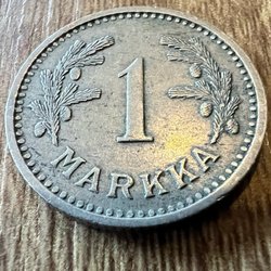 Denna antika persiska valuta är från år 1322 och har ett värde av 1 Riyal. Framsidan visar ett svärd och baksidan visar ett lejon med en soluppgång i bakgrunden.