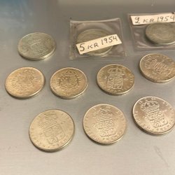 En samling av svenska mynt. Inkluderar 50 kr mynt och 1 kr mynt . 6 st minnesmynt från 1976! 11 st 1-kronor olika årtal