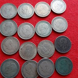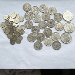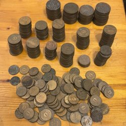 En varierad samling av äldre mynt. Inkluderar mynt från olika länder och årtal. Vissa mynt har årtal och valörer synliga. Exempelvis finns mynt med årtalen Valörer som 5 öre, 20 öre, 50 öre, 1 kr och 10 öre förekommer. Observera att inget serienummer är synligt på dessa mynt.
