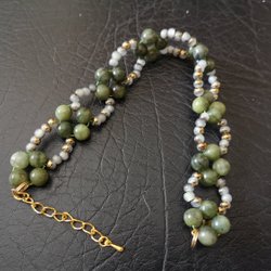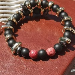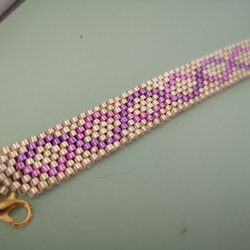 Ett fint, eget designat och eget vävt, armband. Armbandet är 1,6 cm brett och 15,5 cm långt, försett med ett klo lås samt 3 cm förlängnings kedja. Färgen är i tre nyanser, guld färg, brons färg och elfenben.
