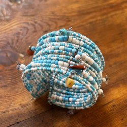 Virkat armband av ren ny ull med glaspärlor och broderad kant.