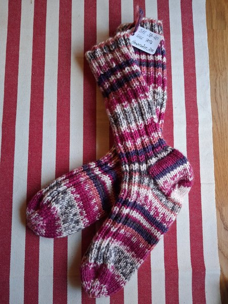 Ett par stickade klassiska raggsockor i fina färger.