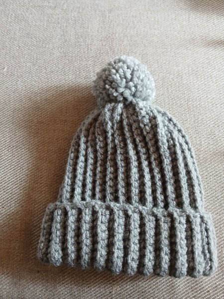 Grå virkad Elsamössa med ribbad kant och en söt liten tofs upptill. Perfekt för att hålla värmen under kyliga dagar. 0-3månader.