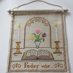 Handvirkad duk i tunnare garn. diameter ca. 25 cm.