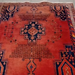 Handvävd ullmatta med traditionellt mönster. Mattan har fransar på kortsidorna.