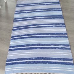 En fin trasmatta i blåa toner. Perfekt för hallen eller köket.