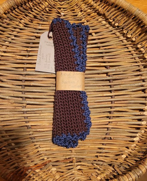 Hand virkad disktrasa i Blend Bamboo garn. Material: 70% bambu, 30% bomull. Tvättas i 40 grader står på garnet.