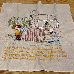 Blått, rött, gult vävt band i bandsked 136cm +tofsar 2x14cm bredd 4cm Ullgarn