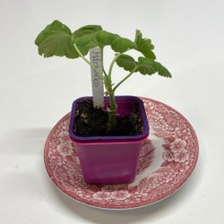 En pelargon stickling med ljusrosa blommor på långa stjälkar. Pelargonstorten har varit med på utställningen på Skansen.