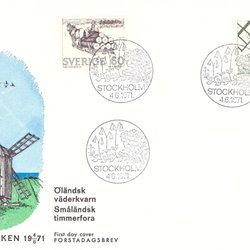 Schweden: FDC 1971. Vignette 1. Småländische Holzforen, Öland-Windmühlen.