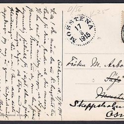 Mosstena 17.8.1915 ank.stpl auf Postkarte Kusenberg, förmaket.