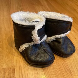 unbenutzte Hausschuhe aus Schaf- und Lammfell,