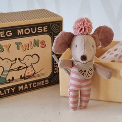 Süße Mäusezwillinge in der Streichholzschachtel von Maileg Mouse Baby Twins in a matchbox
