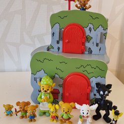9 x Bamse Farmor Lille Skutt Nalle-Maja Skalman Vargen Krösus Reinard + hus