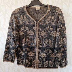 Stylische Masai schwarz/beige Sommer-Strickjacke aus Leinen/Baumwolle, Größe S