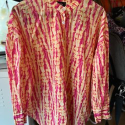 Eine farbenfrohe Bluse im Batikmuster, Größe S/M