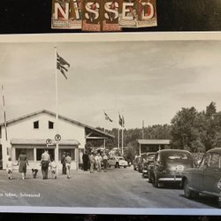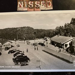 Alte Autos an der schwedischen Mautstation Svinesund