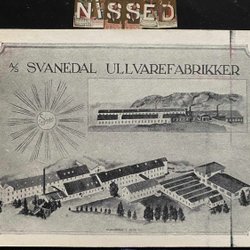 Postkarte mit schöner Vignette A/S Svanedal Ullvarefabrikker mit rotem Stempel