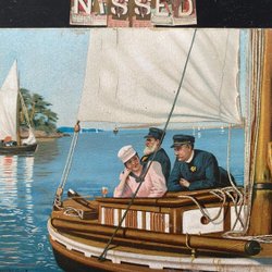 Kartonkarte signiert A Block an Bord eines Segelbootes
