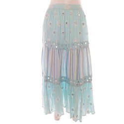 SF COLLECTION Maxikjol 38 Blå Lin 100% Broderi