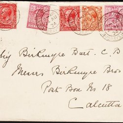 ENGLAND - 1924 - Georg V. 2 x 1 PENNY, 2 Pence + 3 x 6 Pence auf Umschlag nach Indien