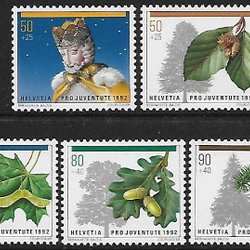 Schweiz Pro Juventute Träd Mi 1483-87 xx