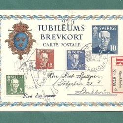FDC, Gustaf V, 80 Jahre. Auf der Jubiläumskarte.