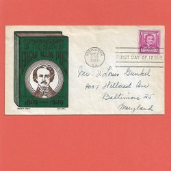 USA FDC Edgar Allan Poe 7.10.1949 Vinjett Boll