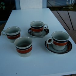 2 Tassen Koppar mit Untertasse und Milchkanne, Höganäs Keramik
