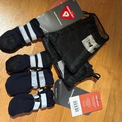 - Skyddande skor: en oumbärlig detalj, särskilt om du bor i en urban miljö där gatorna kan vara hårda mot hundens känsliga tassar.