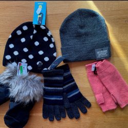Neu mit Patches - 2 Mützen, 2 Handschuhe und Fäustlinge mit Angora
