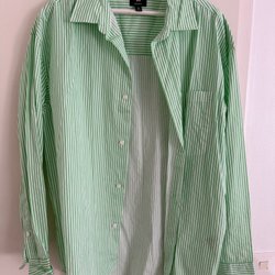 ny, oanvänd snygg randig ljusblå skjorta, storlek L