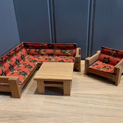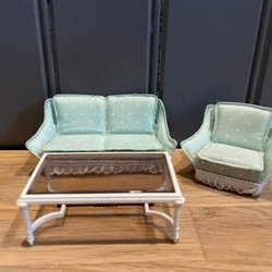 LUNDBY PUPPENHAUS ECKSOFA, 1 SESSEL UND EIN COUCHTISCH RETRO