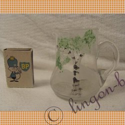 Antikes Sahnekännchen aus handbemaltem Glas - Birkenmotiv