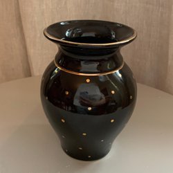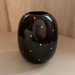 Gefle Vase, schwarz/dunkelbraun mit goldenen Punkten, silberner Stempel
