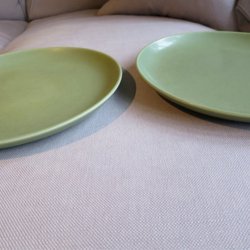 Höganäs zwei olivgrüne Teller 26 cm. M-L Hellgren.