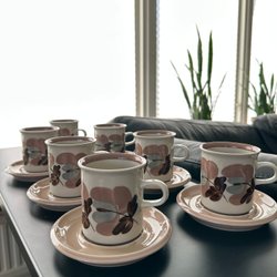 ... och många fler. Beroende på vilken stil du gillar finns både lekfulla koppar och fat som bland annat storfavoriten Mumin. Men du kan även hitta mer klassiskt porslin som små söta kaffekoppar med tillhörande fat i lugna färger. Här finns till och med handmålade koppar i tydlig retrostil. Arabia porslin 70-tal är en storfavorit. Här finns både mer diskreta modeller men även riktiga klassiker i dova färger som grönt och brunt. Till exempel kan du göra bra fynd på retrofavoriten Kosmos. För dig som gillar 60-talet finns även en hel del att hitta. Det läggs ut många annonser på Arabia porslin 60-tal.