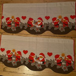 Olavi Vikainen OV große Wandbehänge Mädchen am Weihnachtsbaum zündet Kerzen Weihnachtsbehänge Leinen