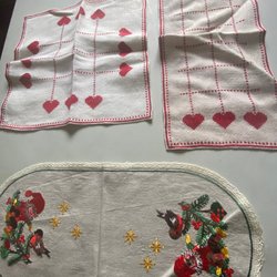 5 Stk. Vintage-Weihnachtstischdecken & Wandbehang, u.a. May Bühler, bedruckte oder bestickte Tücher*