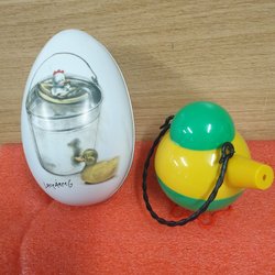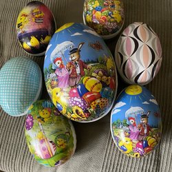 Om man vill ordna påskstämning i hemmet till en billig peng är Tradera en ypperlig plats att leta efter prisvärda påsksaker. Här finns annonser för det mesta som har med påsken att göra, inklusive begagnade påskdukar, bordstabletter, löpare, gardiner, kuddar och väggbonader med klassiska påskmotiv – både i nyare design och i retrostil. Prydnadskycklingar, påskharar, äggkoppar, gula ljus, ljusstakar och manschetter är andra vanliga påsksaker som ofta dyker upp i utbudet. Precis som påskgummor, tuppar, hönor och ägg i olika varianter. Förutom handmålade prydnadsägg, traditionella påskägg och godisgömmor av olika slag kan man även ha turen att stöta på begagnade designerägg i nyskick från formgivare som Lasse Åberg och Ulrika Hydman Vallien. Man kan också hitta äggvärmare och andra virkade påsksaker med fina mönster, liksom mängder av fjädrar och mindre pynt att hänga i påskriset. Däribland hela set med små påskkycklingar, glasdroppar, ägg, virkade blommor, hjärtan, skruvar, harar och liknande figurer. Tillgången på påsksaker varierar beroende på aktuella annonser, men oavsett vilken typ av påskpynt man föredrar att pryda sitt hem med finns det goda chanser att hitta någonting man tycker om här på Tradera.