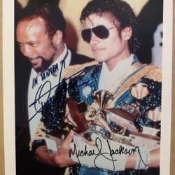 SIGNERAT MICHAEL JACKSON FOTO + Äkthetsbevis Quincy Jones