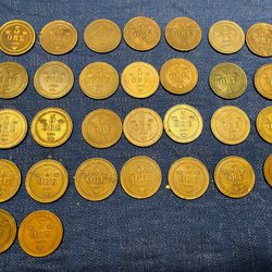 Zehn alte Münzen.