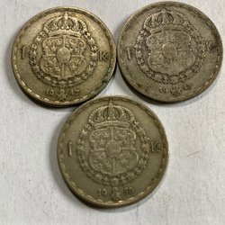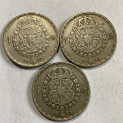 Silbermünze, Schwedische 1 Kronen von 1942, 1947 und 1948