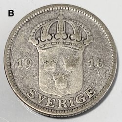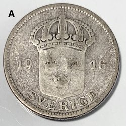 50öre 1916 1 und 6 gleich groß, glaube ich