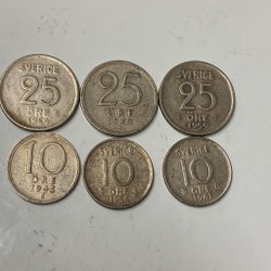 Äldre Svenska silver mynt 3st 10 öringar & 3 st 25 öringar