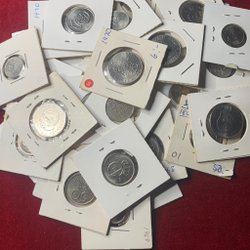 30 Silbermünzen, Wert 5 kr. Jahr 1954 - 1955 - 1971.